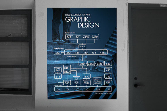 Summary: San Diego State University tasked their Design Studio to create an informational poster and brochure for incoming freshman entering the graphic design program. The poster and brochure are intended to reflect the department’s design style as a way to represent the current generation of designers at the school.
